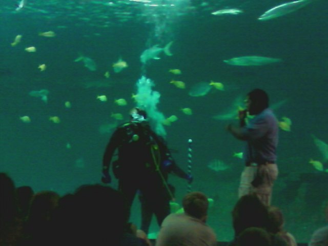 Townes asked if they name any of their sharks. Dean the Diver told him that they don’t, because they try to treat all their sharks as true wild animals and naming them would mean treating them more like pets. After hearing that, Townes leaned over and whispered to me, “Well, Shadow is definitely not a wild animal!”